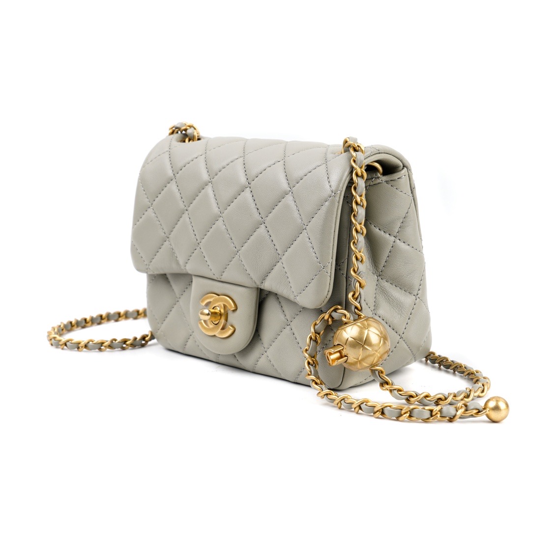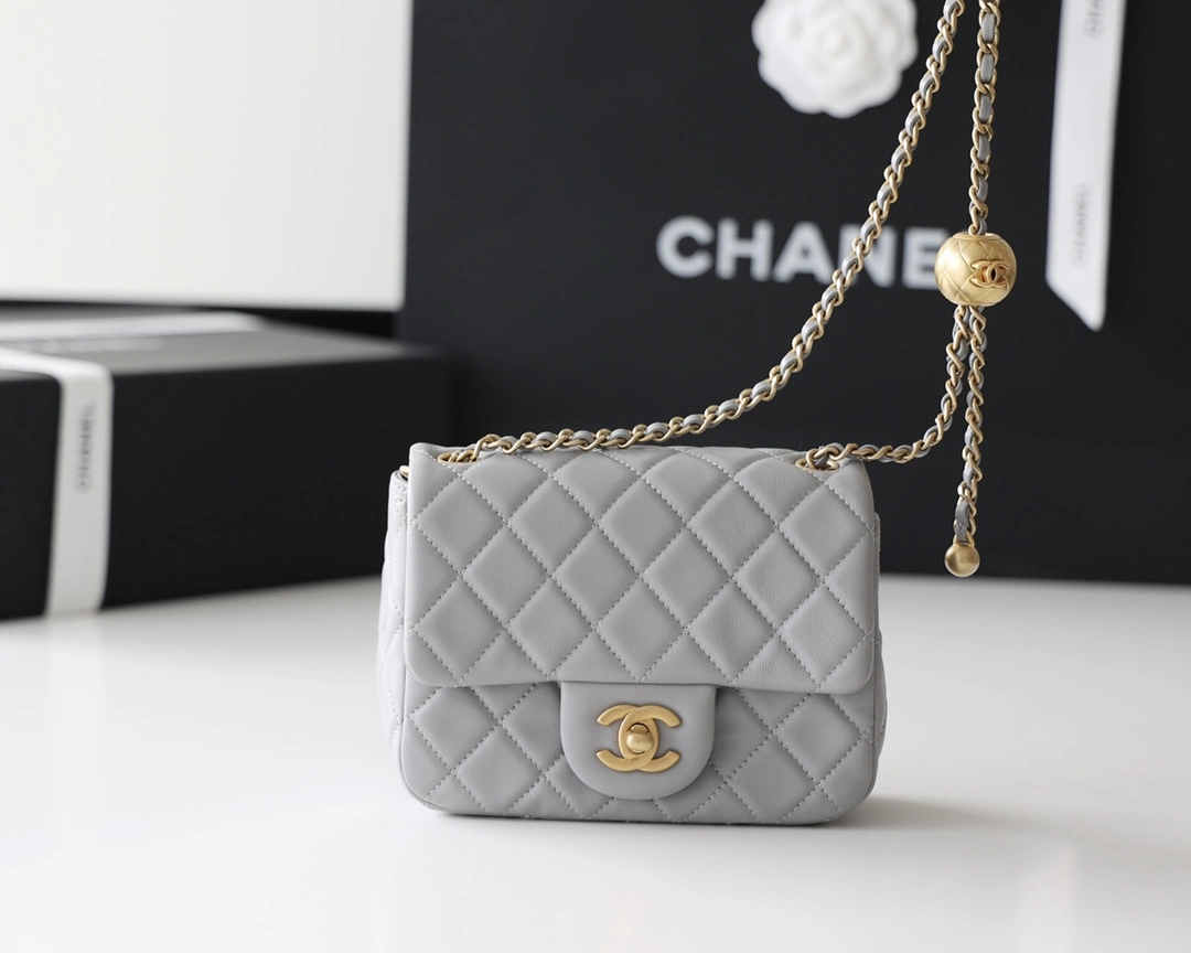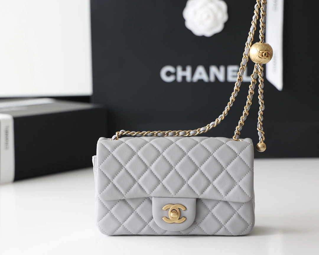 CHANEL FLAP BAG GOLD BALL GRAY