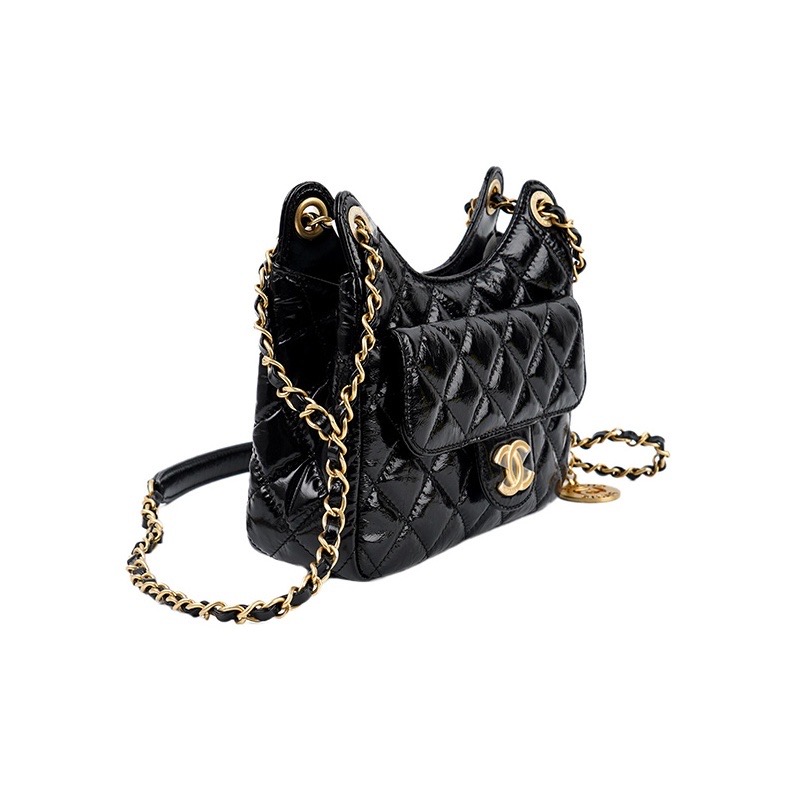 CHANEL SHINY CRUMPLED CALFSKIN HOBO HANDBAG