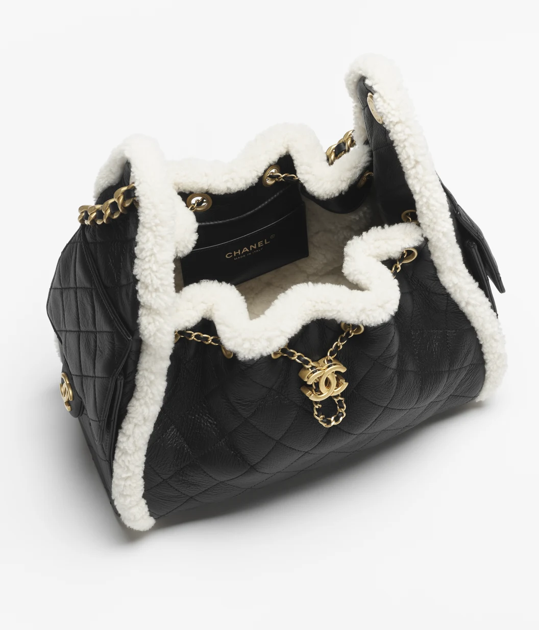 CHANEL small 25 handbag Crumpled Shearling Sheepskin & Gold-Tone Metal